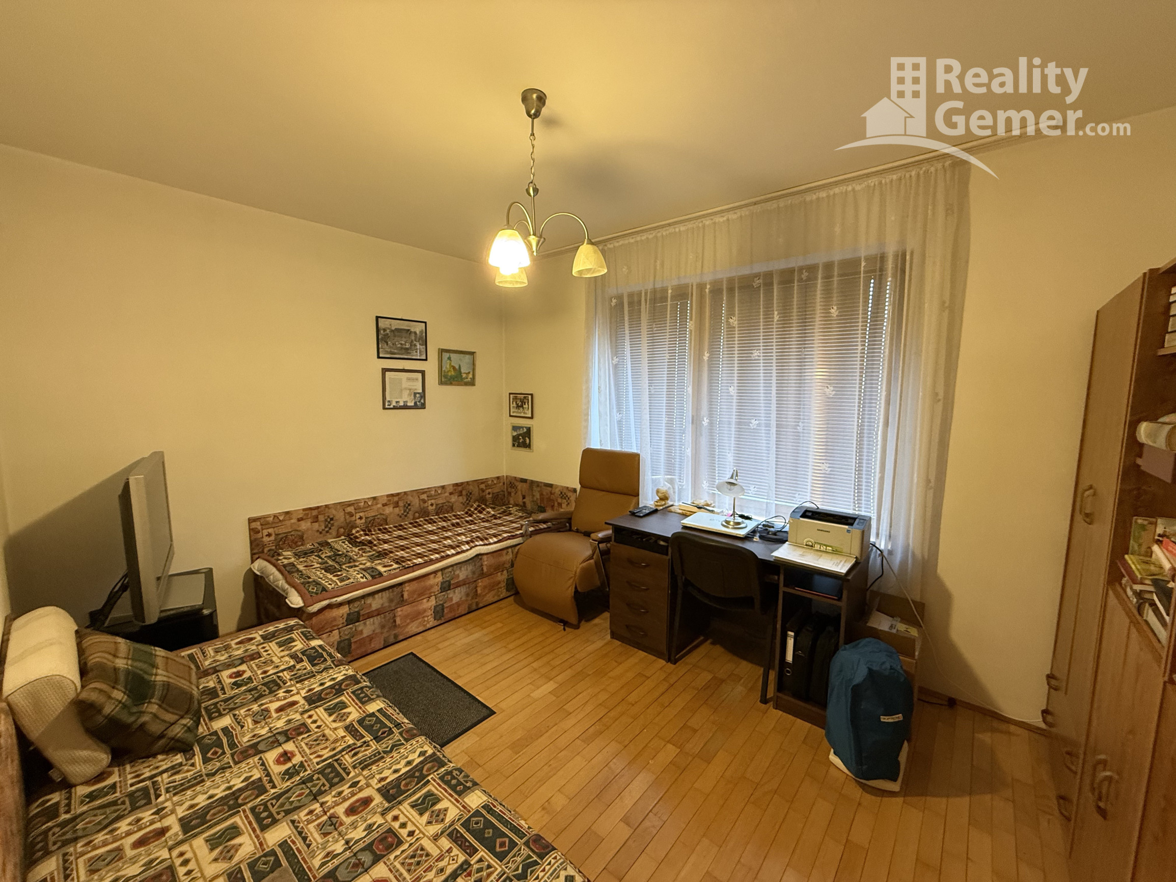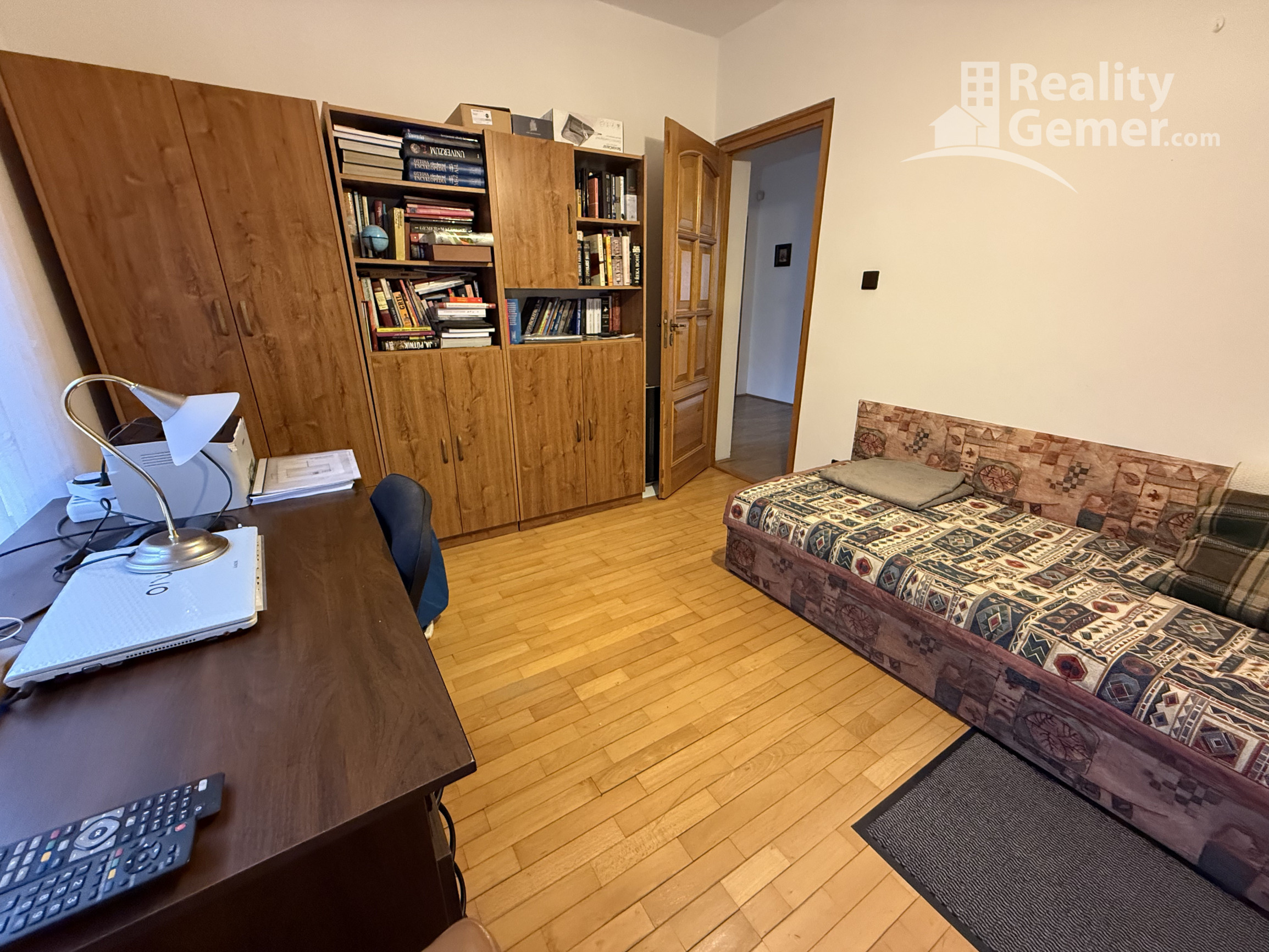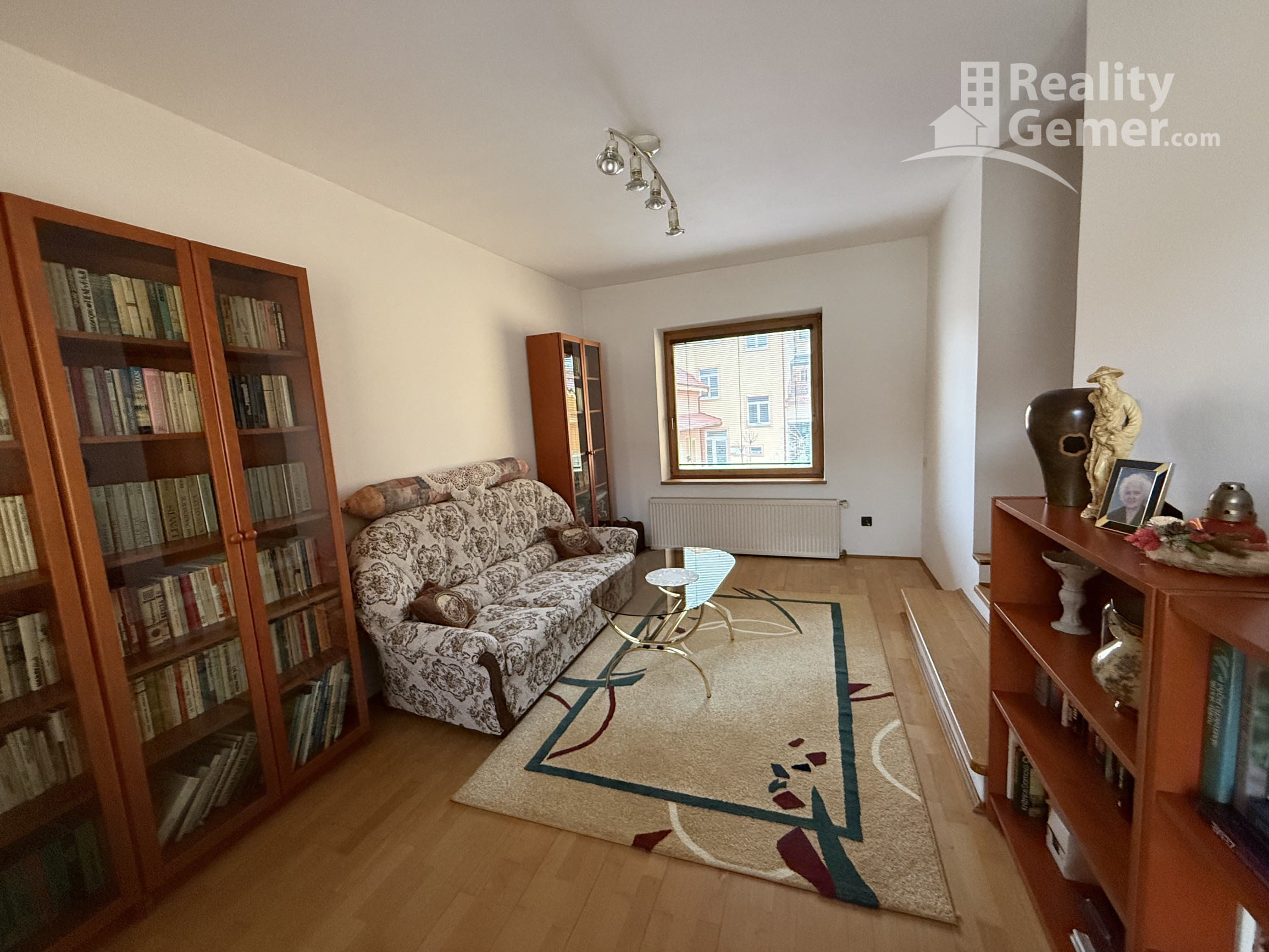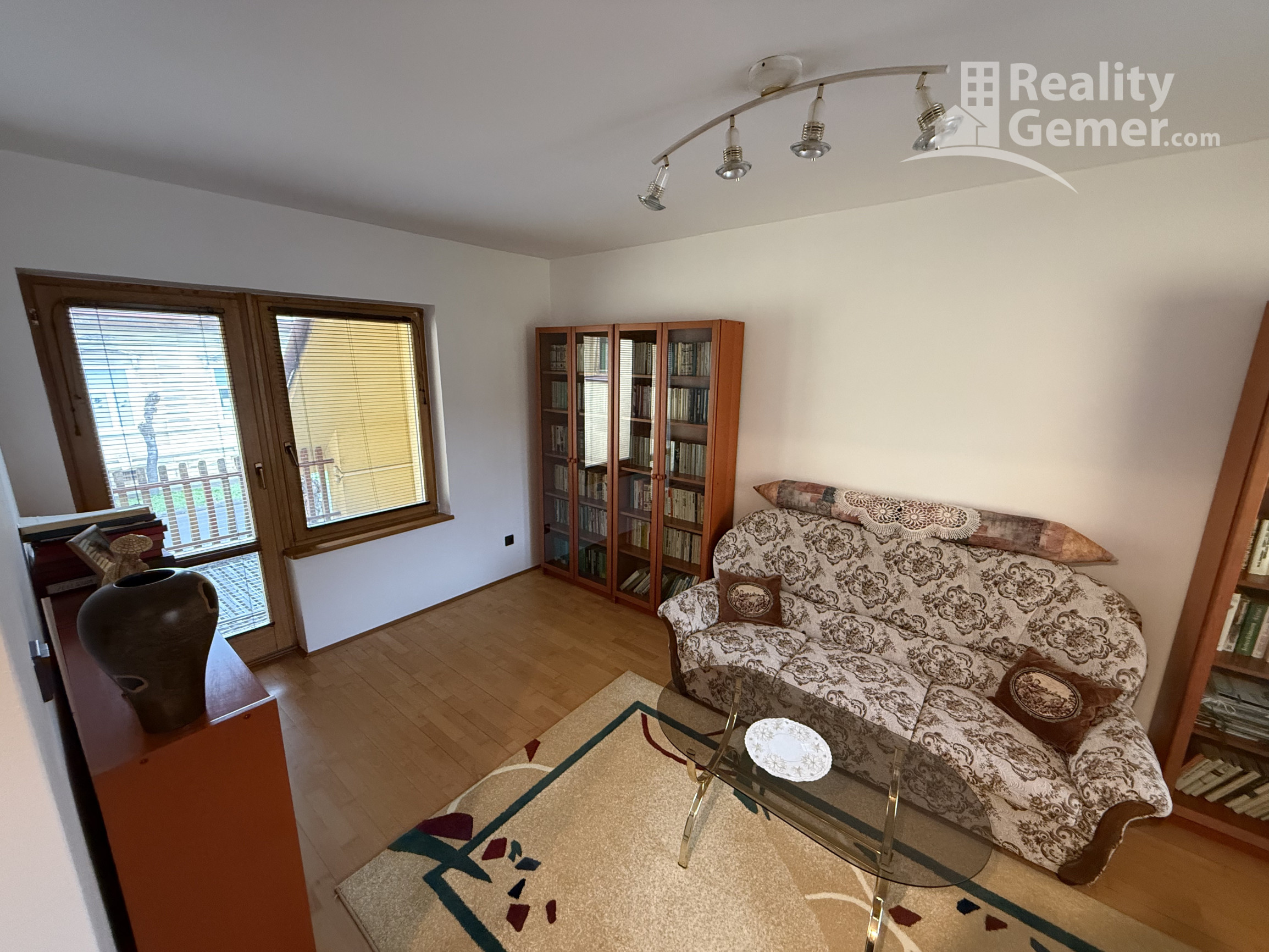 Tretia izba / Knižnica: Momentálne využívaná ako štýlová čitáreň, ideálna aj ako ďalšia plnohodnotná spálňa s vlastným balkónom.
