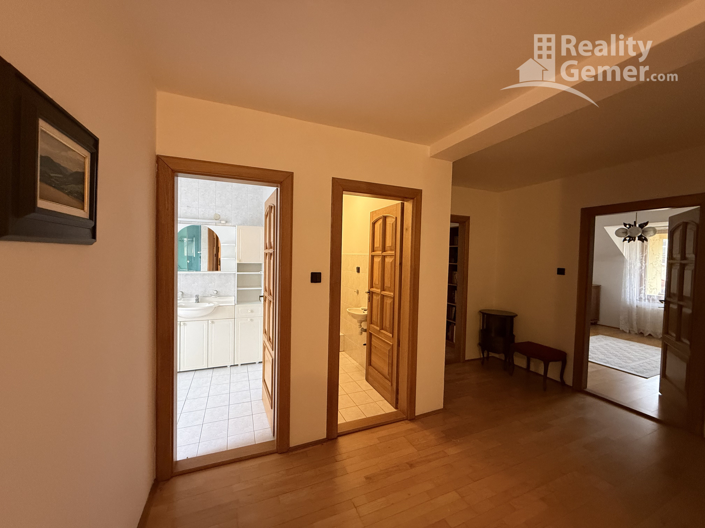 Kúpeľňa a šatník: Veľkolepá kúpeľňa s vaňou aj sprchovým kútom, oddelená toaleta a samostatný priestranný šatník, ktorý uspokojí aj najväčšie nároky na úložný priestor.